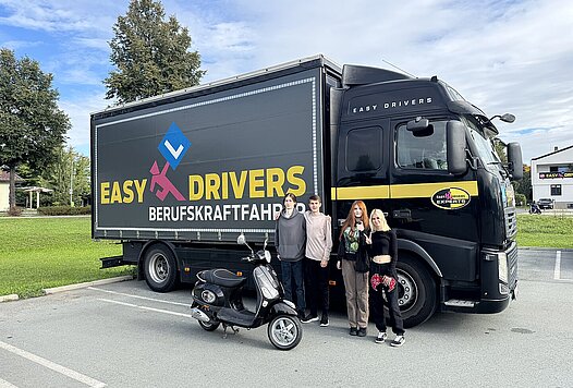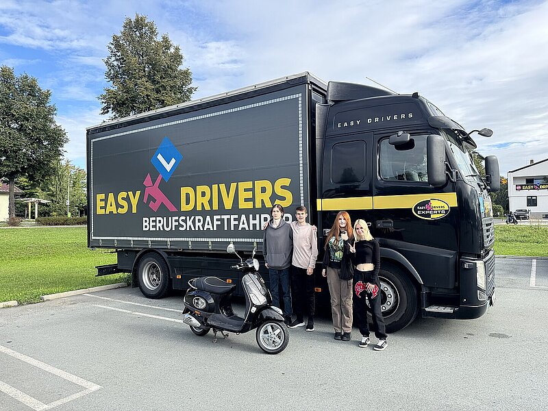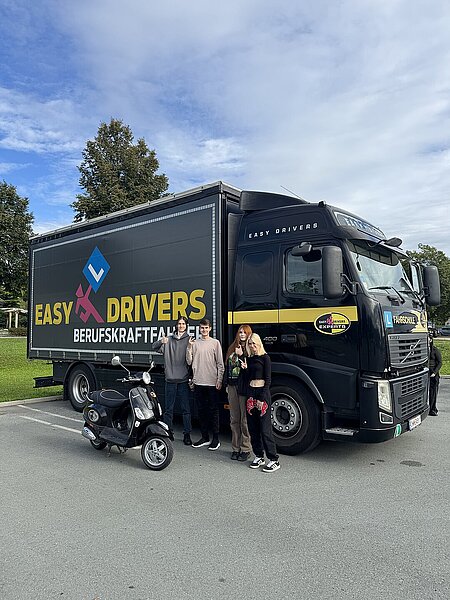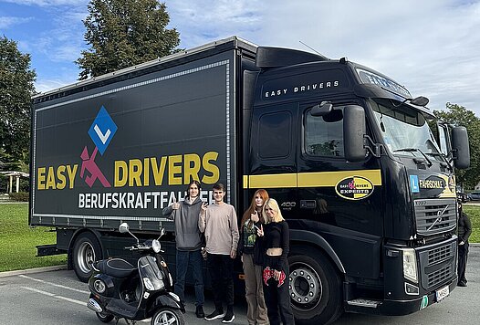 Zum einen stand der Besuch der Fahrschule Easy Rivers auf dem Programm. Die Jugendlichen erhielten dort nicht nur interessante Einblicke in die Abläufe einer Fahrschule, sondern durften auch selbst aktiv werden: Mit Mopeds und Autos konnten sie erste Fahrversuche unternehmen. Ein besonderes Highlight war die gemeinsame Runde mit einem LKW durch Oberwart. Zusätzlich sorgte ein Gewinnspiel mit attraktiven Preisen – unter anderem Gutscheinen – für große Begeisterung.